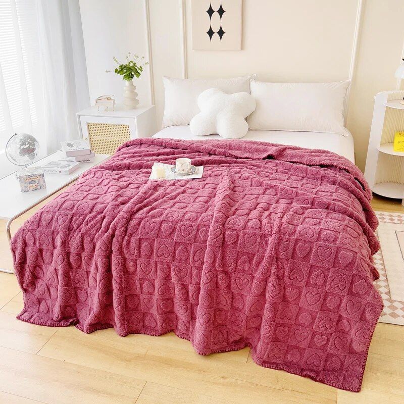 Our Flannel Fleece Throw Blanket is not just a blanket; it’s a blend of functionality and style. The modern heart pattern adds a touch of elegance, while the anti-pilling and portable features make it a practical choice for everyday use. Its warmth and softness are unmatched, making it a must-have for any household.